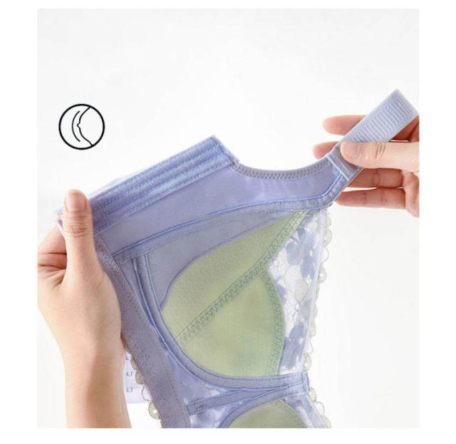 | 大きな胸を小さく見せるブラ&ショーツセット。 胸を小さく見せるブラ、自然に谷間しっかり深V効果で魅惑のデコルテ超薄インナー。 柔らかなワイヤー、レース仕上げで締め付けず、柔らかな肌感と通気性の良さは、これからの季節におすすめ。 バスト全体をコンパクトに収めることで、ホッソリ見せて、しっかり着やせ効果も与えてくれる。 ノンワイヤー!ノンストレス! | |