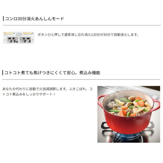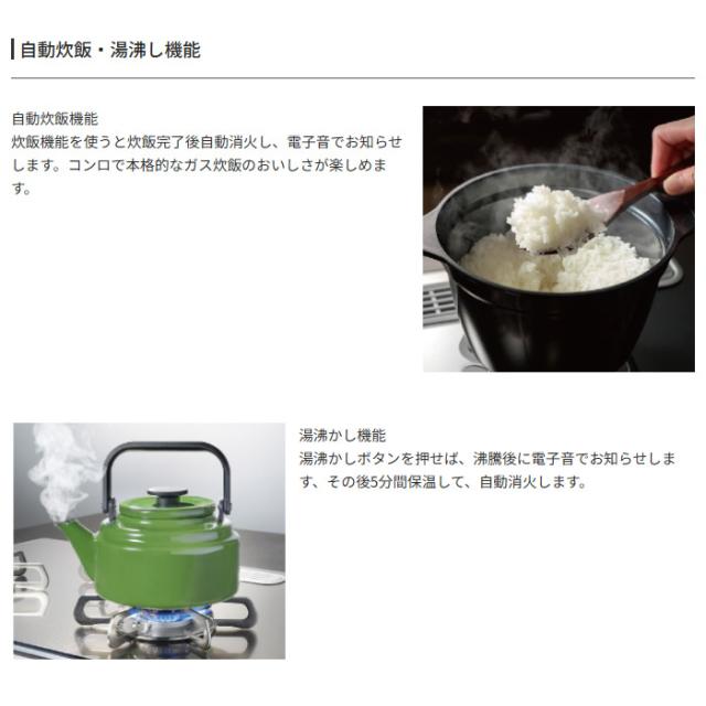 炊飯機能を使うと炊飯完了後自動消火し、電子音でお知らせします。コンロで本格的なガス炊飯のおいしさが楽しめます。