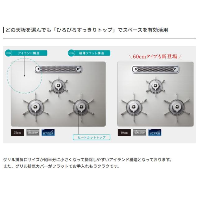 グリル排気口サイズが約半分に小さくなって掃除しやすいアイランド構造となっております。
