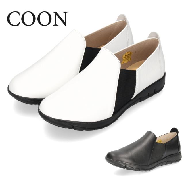 スリッポン レディース 本革 靴 スニーカー レザー 牛革 きれいめ ゴム 日本製 COON CN2401 クーン