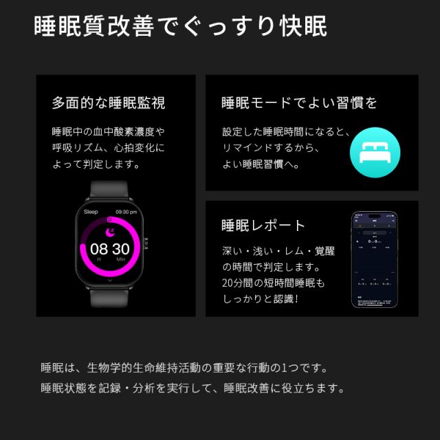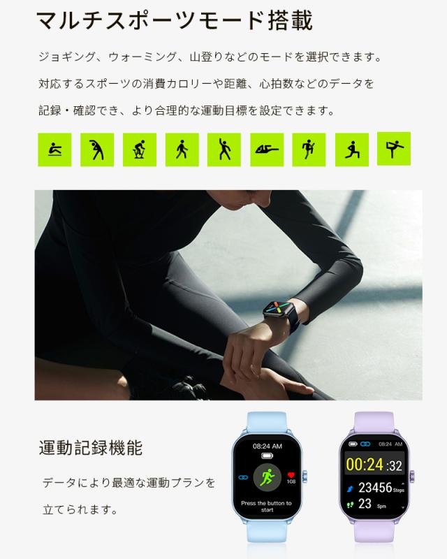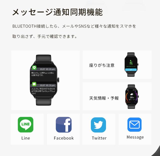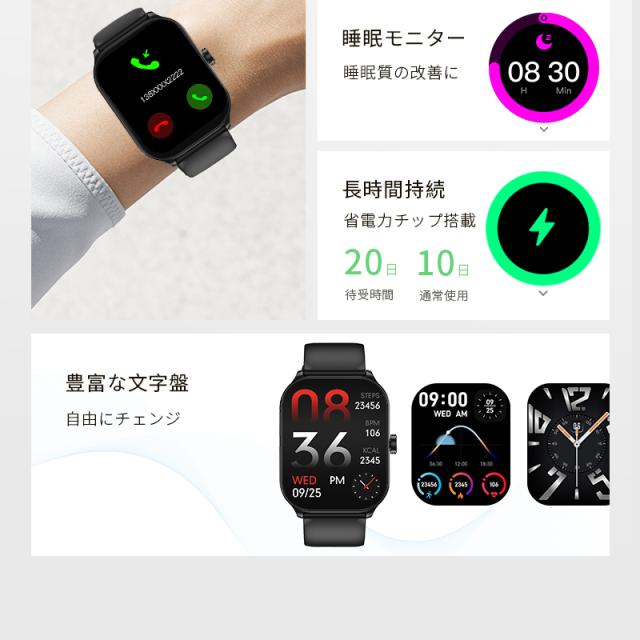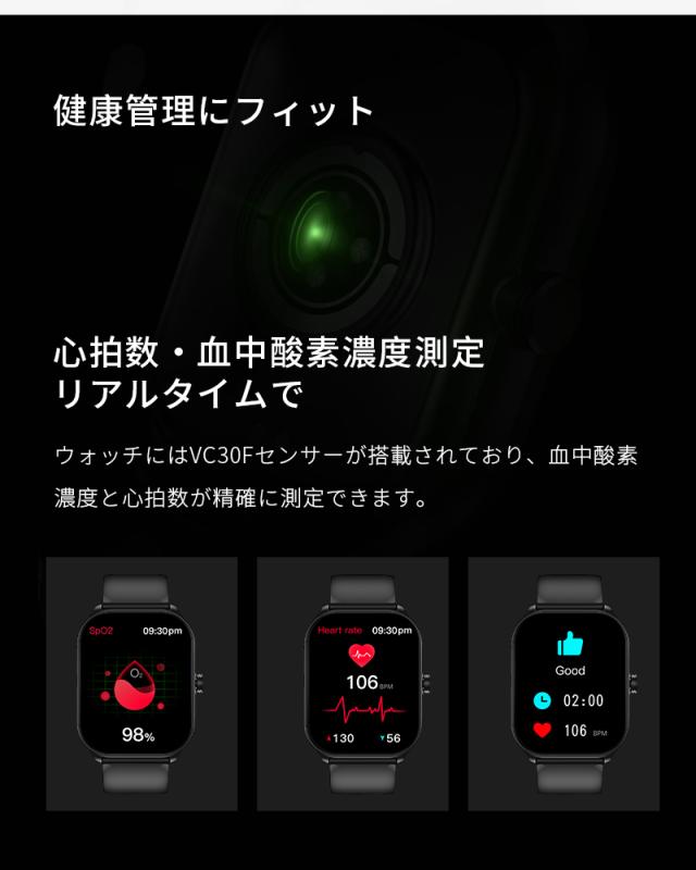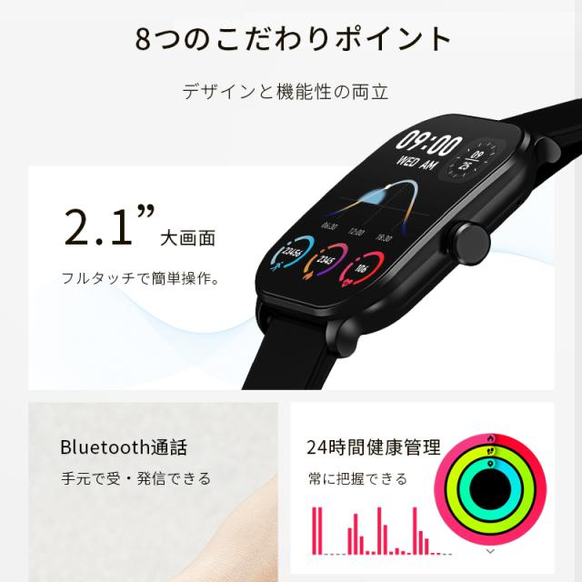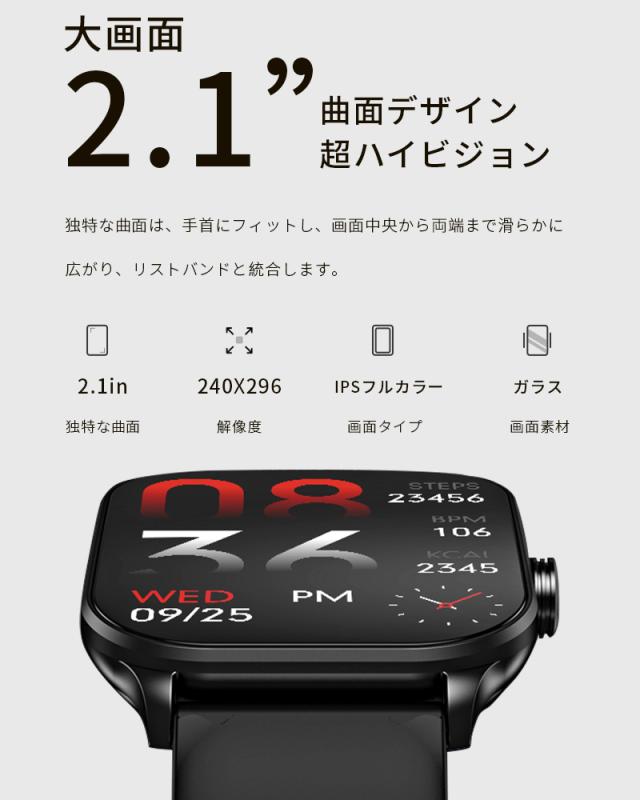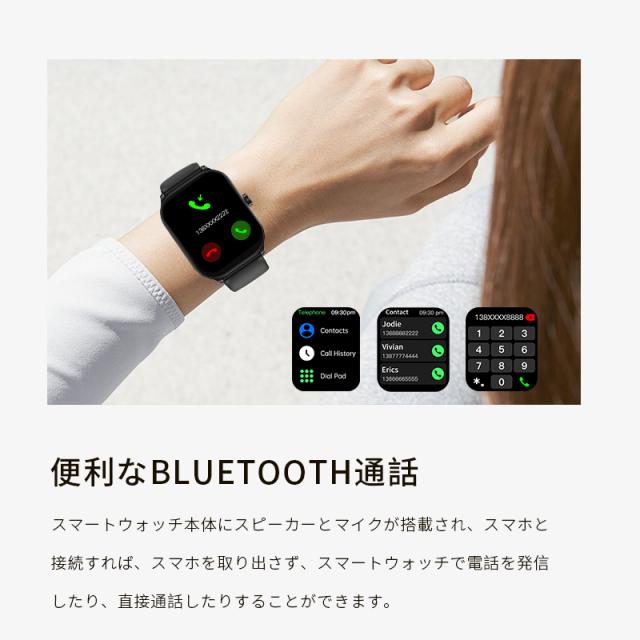 スマートウォッチ Bluetooth通話 直接通話できる 2.10インチ大画面 多機能 腕時計 電話発信 着信/Twitter/Facebook/LINE/メッセージ通知 IP68防塵防水 マルチ運動モード 歩数計 消費カロリー 呼吸訓練 心拍数 血中酸素 アラーム 睡眠管理 【PL保険加入済み製品・安心】