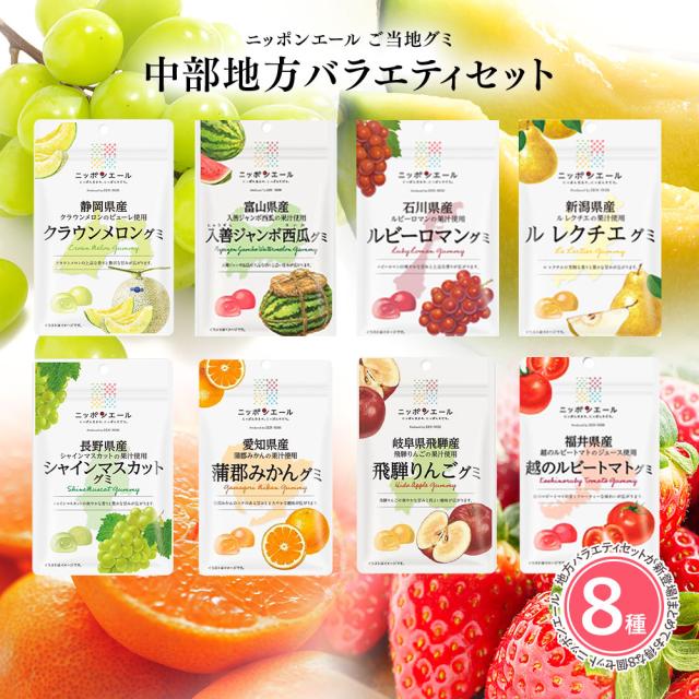 【中部地方バラエティセット 8種】全国農協食品 ニッポンエール ご当地グミ ご当地 お菓子 グルメ お土産 名産 果実グミ アソート