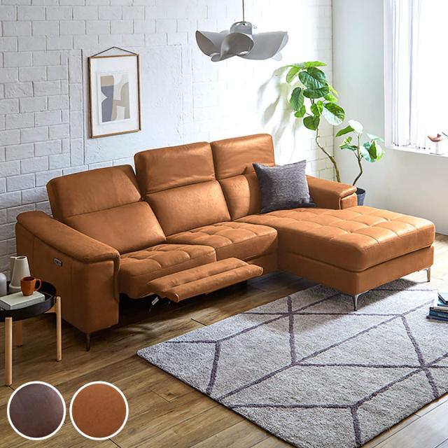 カウチソファ 左カウチ 3人掛け 幅236cm 電動リクライニング レザーファブリック ( ハイバック ヘッドレスト7段階 フットレスト USBポート 充電 レザー調 左 カウチ ソファ 電動 肘付き ひじ掛け コーナーソファー L字型 高級感 )