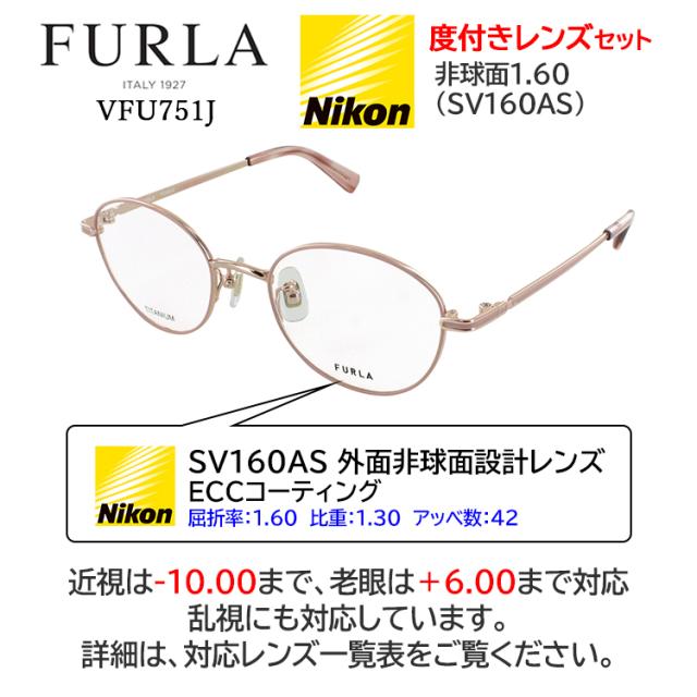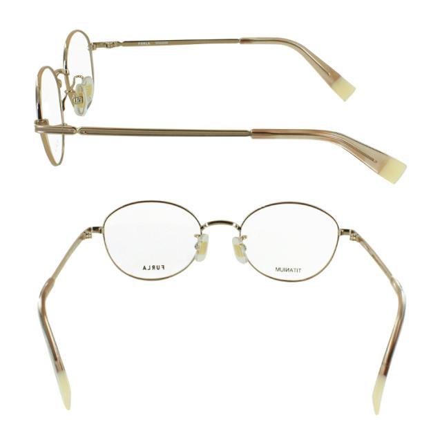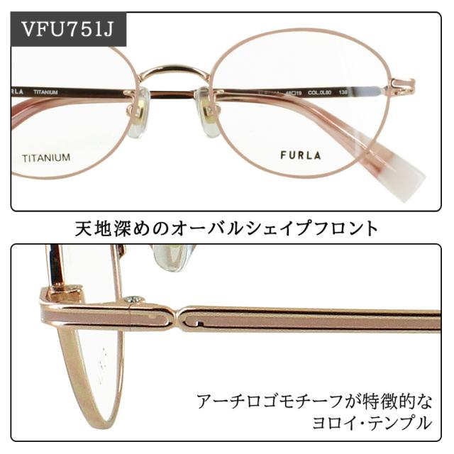 フルラ 度付き メガネ 度あり オーバル チタンフレーム 度入り 近視 乱視 遠視 老眼 度なし 伊達 薄型 非球面レンズ セット レディース ブランド FURLA VFU751J