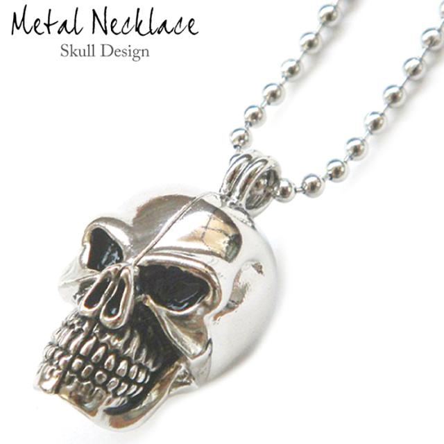 【メール便対応】スカル 髑髏 ボールチェーン メタルネックレス ネックレス ペンダント アクセサリー メンズ レディース ユニセックス シンプル スタイリッシュ┃