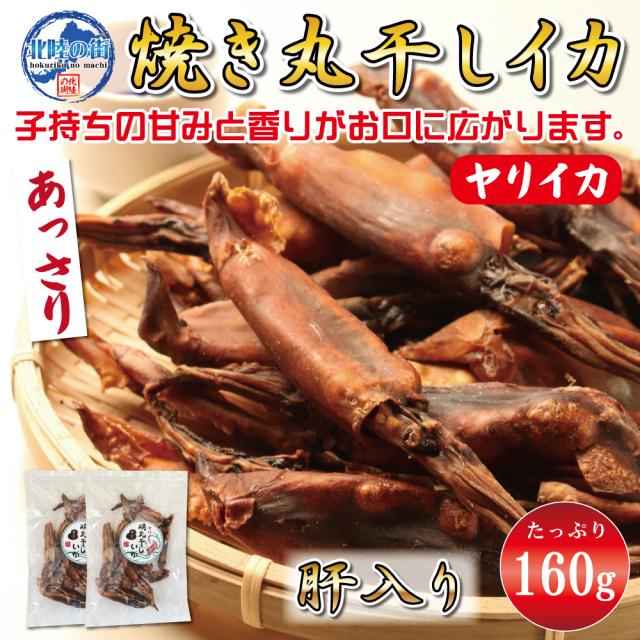 おつまみ 肝入り焼き丸干いか ヤリイカ 80g×2 子持ち 干物 珍味 業務用 焼き 一口サイズ チャック付き袋入り スルメイカ 海鮮 イカ いか 干しイカ 北陸応援