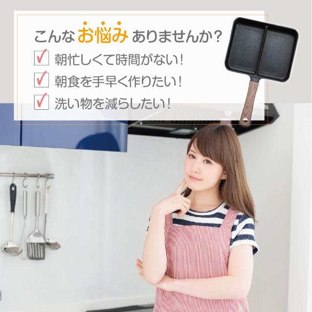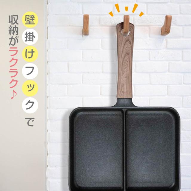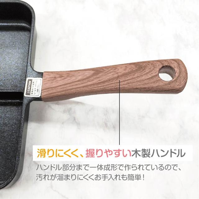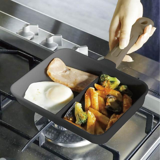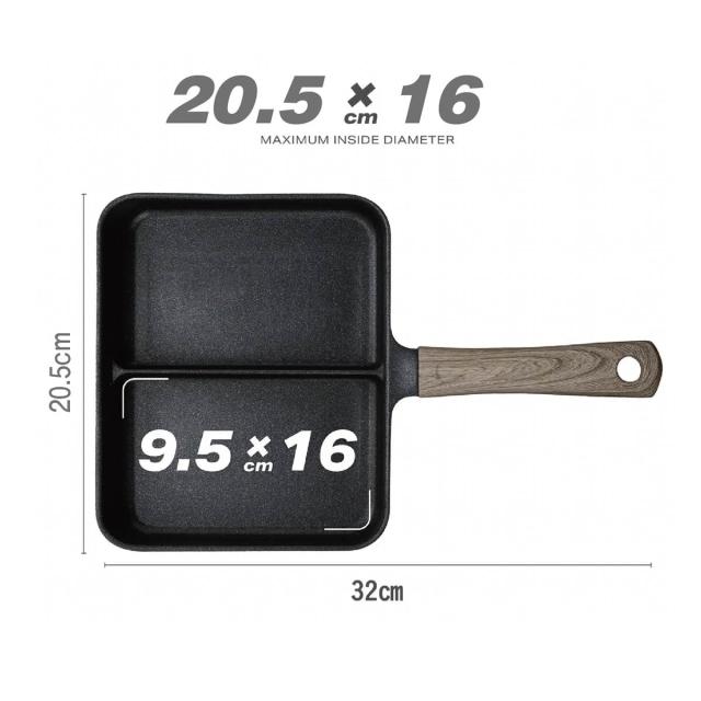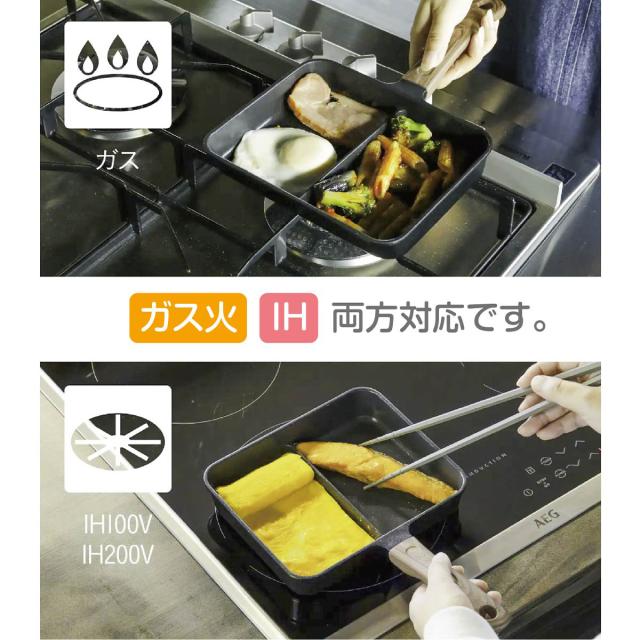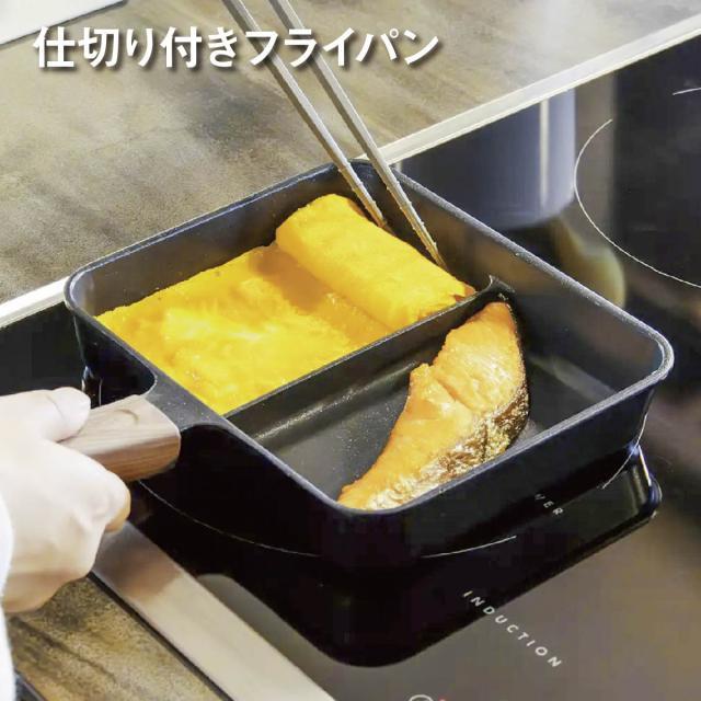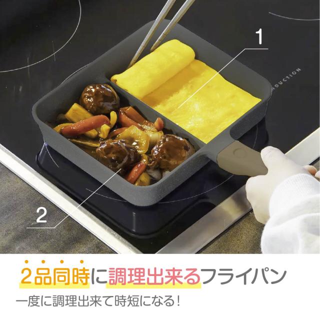 フライパン 仕切り付き IH対応 ガス火 IH 対応 玉子焼き器 卵焼き器 仕切り付きフライパン 卵焼き 角型フライパン 朝食 お弁当作り 調理器具 時短調理 同時調理 frypan02