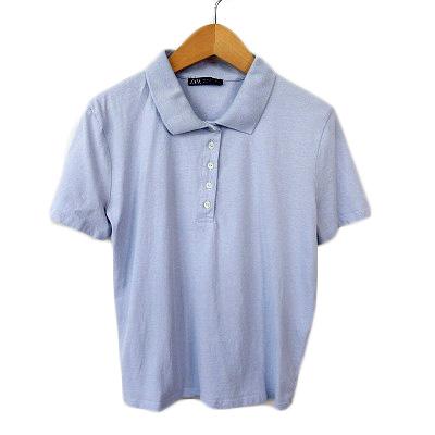 【中古】ザラ ZARA ポロシャツ 半袖 コットン S 青 ブルー レディース
