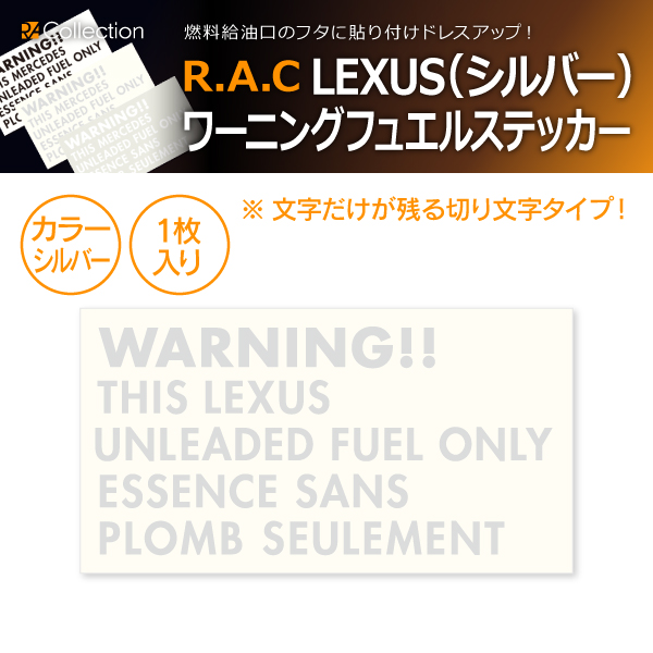 【在庫限】R.A.C 給油口 ワーニング ステッカー レクサス シルバー 1枚入り(商品コード:501034)