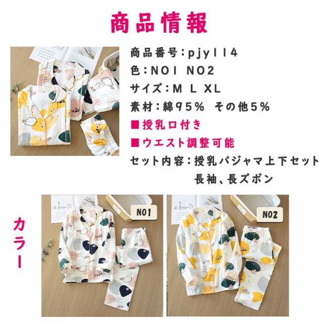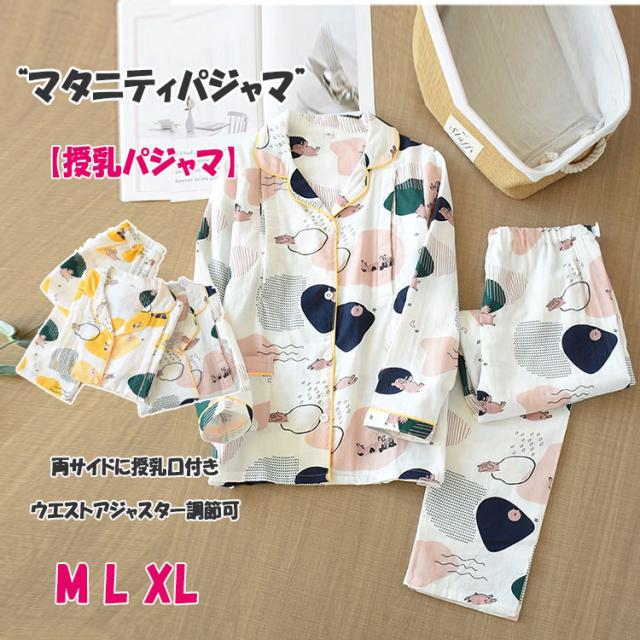 マタニティ パジャマ 授乳パジャマ 前開き 薄手 秋 春 長袖 長ズボン 上下2点セット M L XL 授乳 パジャマ 両サイドに授乳口付き ウエストアジャスター調節可 産前産後 授乳期 出産祝い 妊婦服 ルームウエア