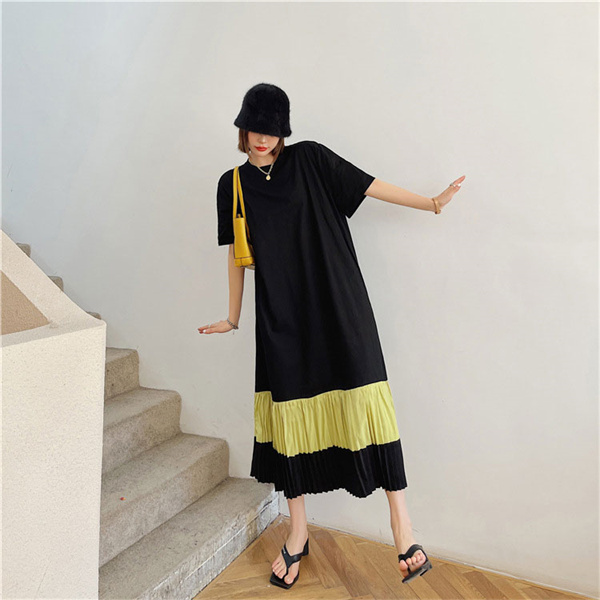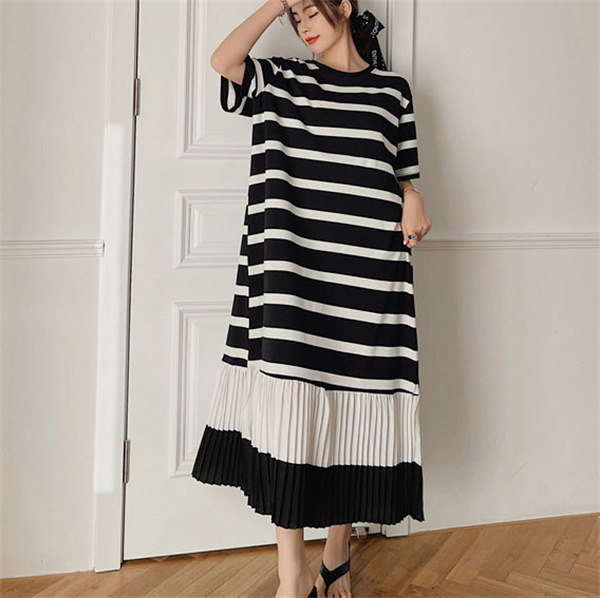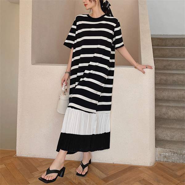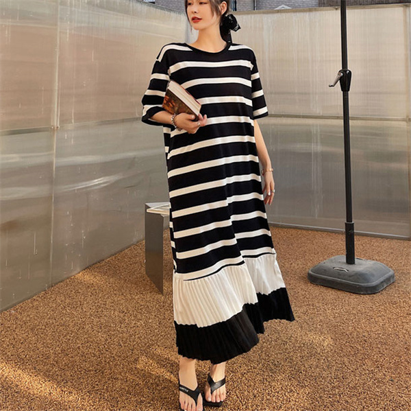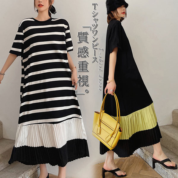 ■キーワード:夏 レディース 大きいサイズ ワンピース ドレス ロングワンピース ロング丈 マキシワンピース マキシ丈 サマードレス ボーダー バイカラー 配色 半袖 カットソーワンピ Tシャツワンピース プリーツ プリーツ切り替え オーバーサイズ 体型カバー 着痩せ 細見え 脚長 大人 カジュアル 人気 おしゃれ お出かけ 旅行 おしゃれ ゆったり 着痩せ