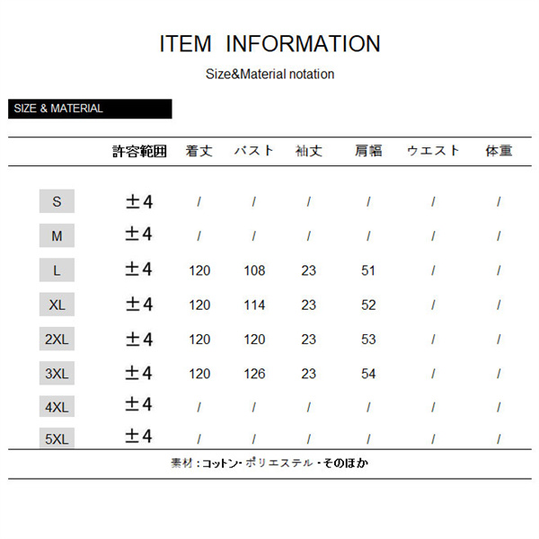 サイズ:/L/XL/2XL/3XL