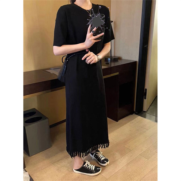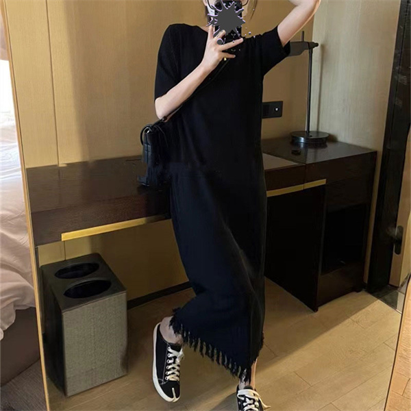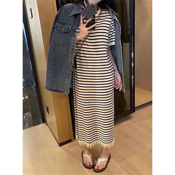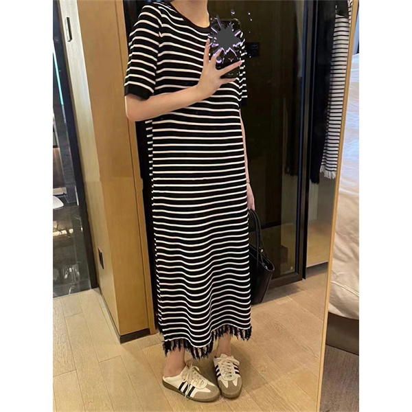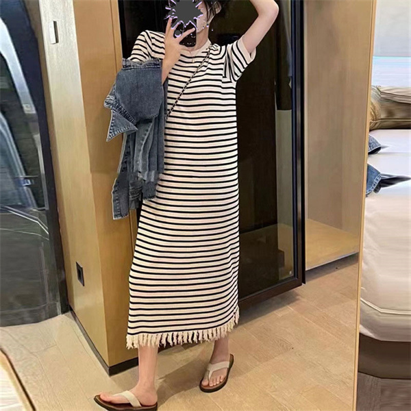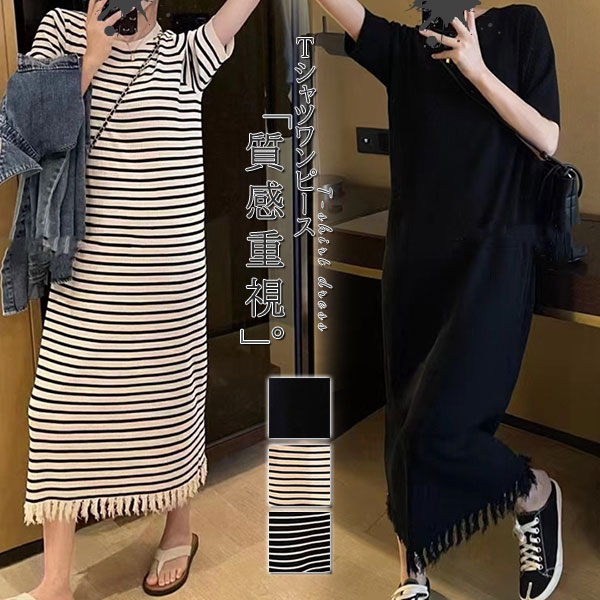 tシャツワンピース 半袖 レディース ロングTシャツ ボーダー フリンジ ティーシャツ ゆったり 涼しい 細見え 脚長 大人 カジュアル 人気