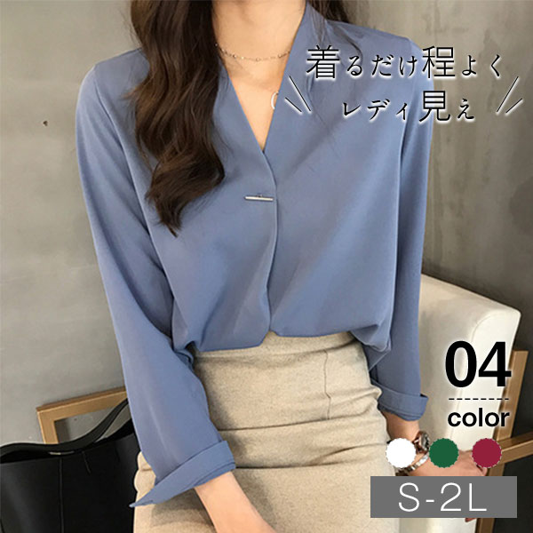 ポイント超超祭 ブラウス レディース シャツ vネック きれいめ オシャレ ブラウス 白 長袖トップス 大人 通勤 ゆったり 30代 40代 春コーデ 大きいサイズ