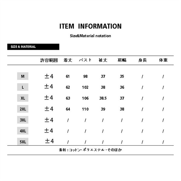 ※基本的に、XL・LL・2Lのサイズはすべて同じサイズです。