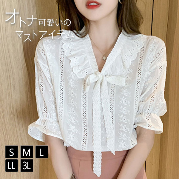 ブラウス レディース 40代 春秋新作 ボウタイブラウス レース シフォンブラウス オシャレ 韓国風トップス 上品 通勤 OL ゆったり tシャツ