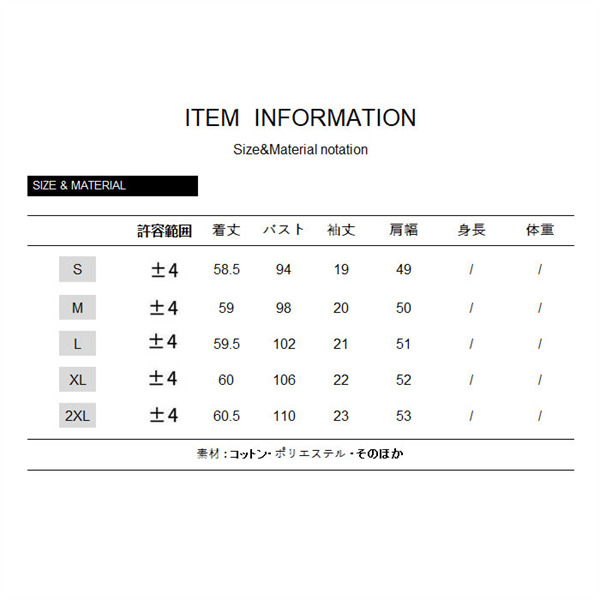 ※基本的に、XL・LL・2Lのサイズはすべて同じサイズです。