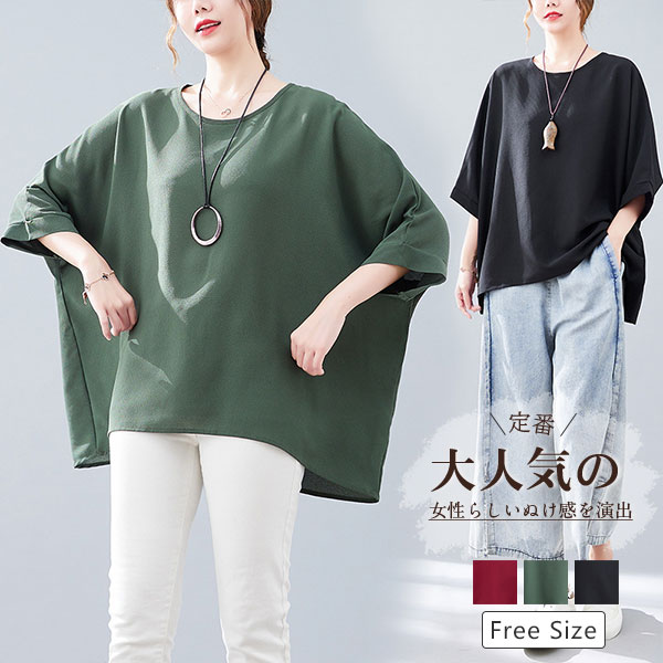 ポイント超超祭 人気急上昇 Tシャツ レディース 春夏 春服 トップス ドルマンスリーブ ロング丈 カットソー プルオーバー 半袖 クルーネック 汗染みない ロング