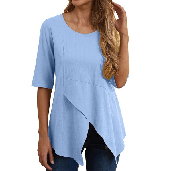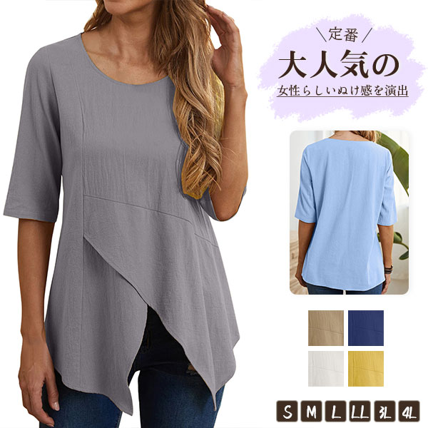 Tシャツ tシャツ 半袖 50代 レディース 夏 ロング丈 トップス ギャザー 大きいサイズ カットソー 無地 カジュアル 着まわし コーデ シンプル