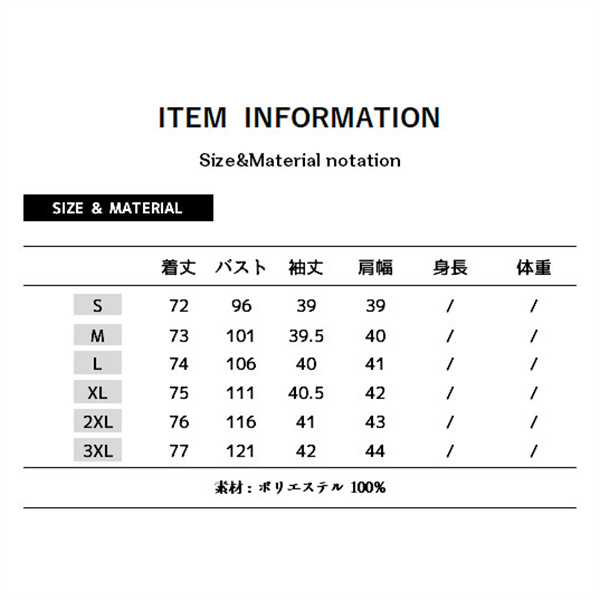 サイズ:/S/M/L/XL/2XL/3XL