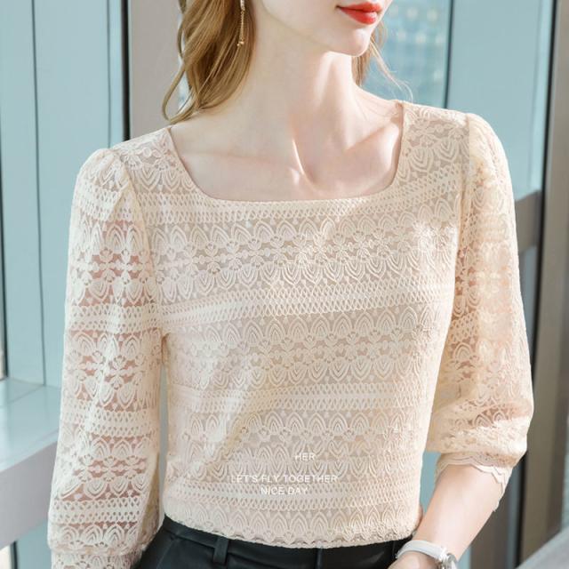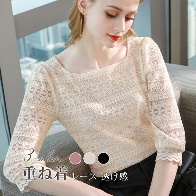 総総レース 透け感 チュール ブラウス シャツ トップス カットソー レディース インナー 可愛い ボートネック 春 重ね着 長袖 薄手 総レース