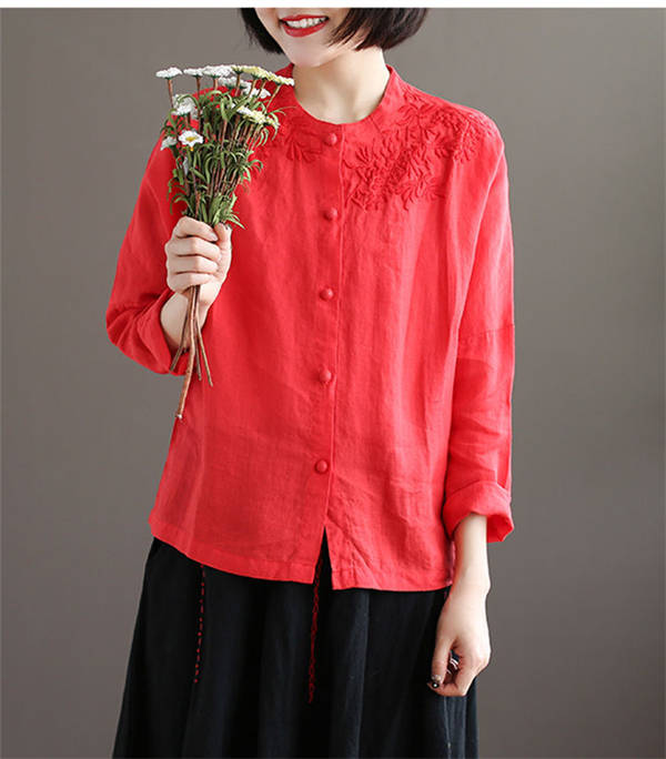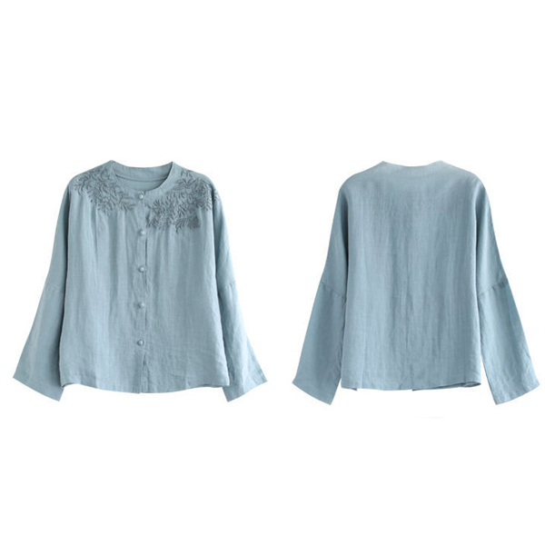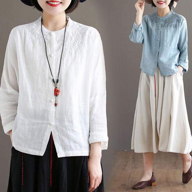 限定価格 リネンシャツ 綿麻ブラウス 夏新作 レディース 薄型 綿麻 長袖Tシャツ トップス 無地 体型カバー ゆったり 大きいサイズ 刺繍 涼しい きれいめ