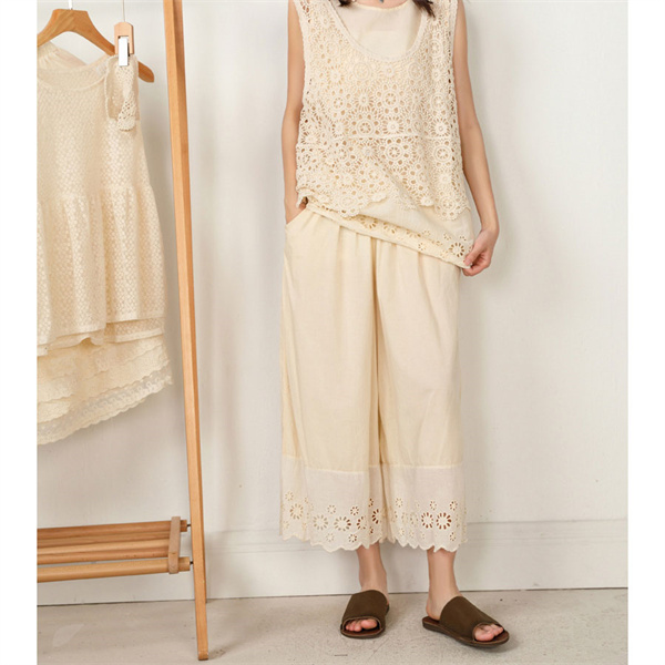ポイント超超祭 ペチパンツ レディース パンツ 綿麻 ボトムス インナーウェア レイヤード 重ね着 レース シンプル ロング 下着 体型カバー ウエストゴム 夏