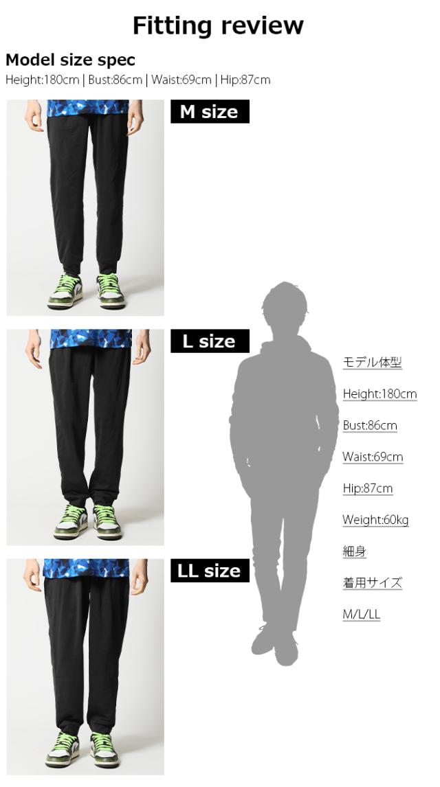 【モデル】Lサイズ着用:180cm 体重:65kg / B85 / W68 / H85