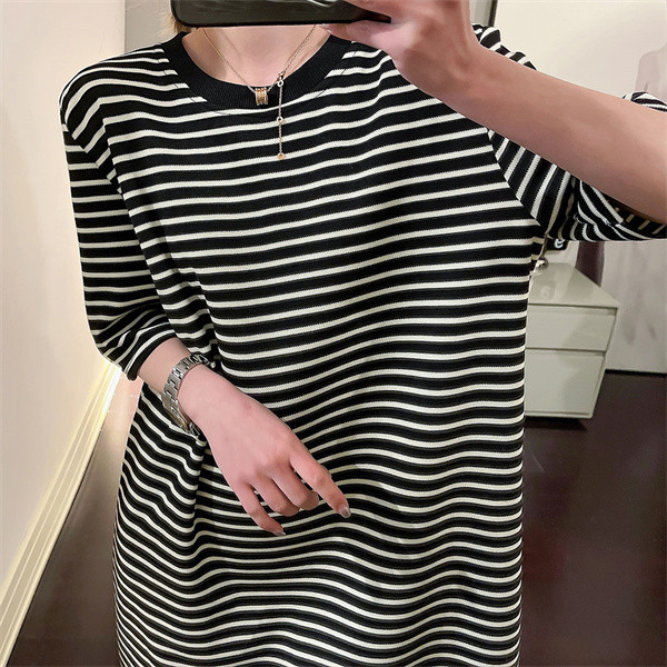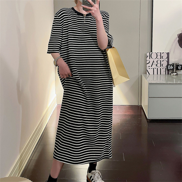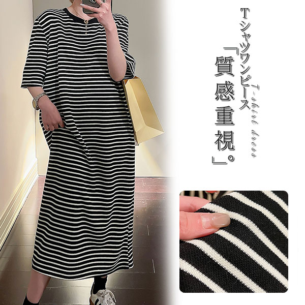 tシャツワンピース 半袖 レディース ワンピース ボーダー バイカラー クルーネック 涼しい 部屋着 細見え おしゃれ ゆったり 着痩せ 柔らかい