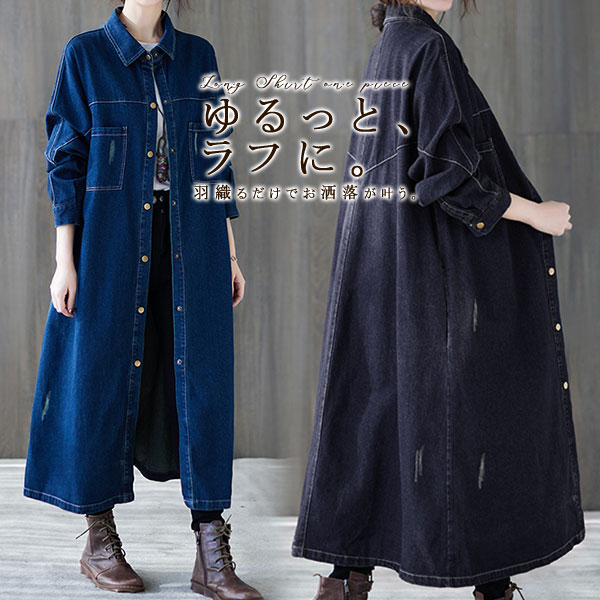 ワンピースレディース40代 デニム きれいめ 春 シャツワンピ 長袖 レディース ゆったり 夏新作 大きいサイズ 体型カバー ゆったり きれいめ