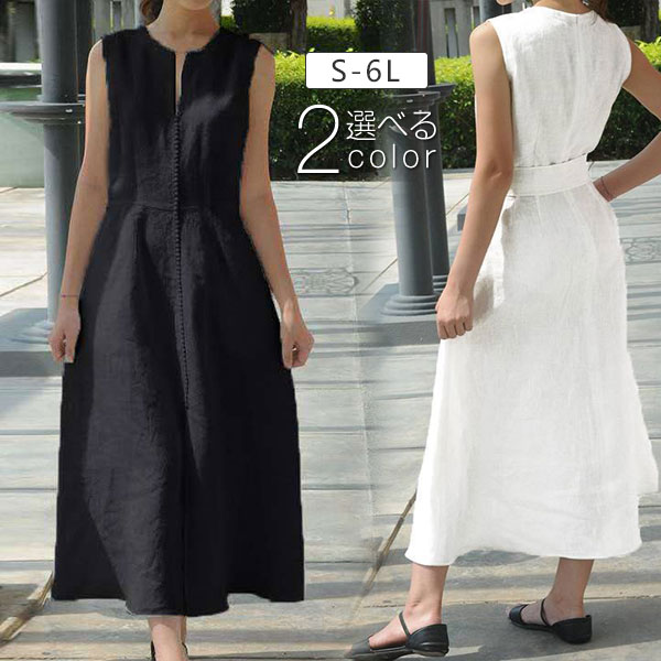 ワンピース 夏 綿麻混 リネンワンピース 麻ワンピース ロングワンピース ノースリーブ フレアワンピース カジュアル 涼しい 春 夏 ゆったり