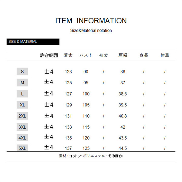 サイズ:/S/M/L/XL/2XL/3XL/4XL/5XL