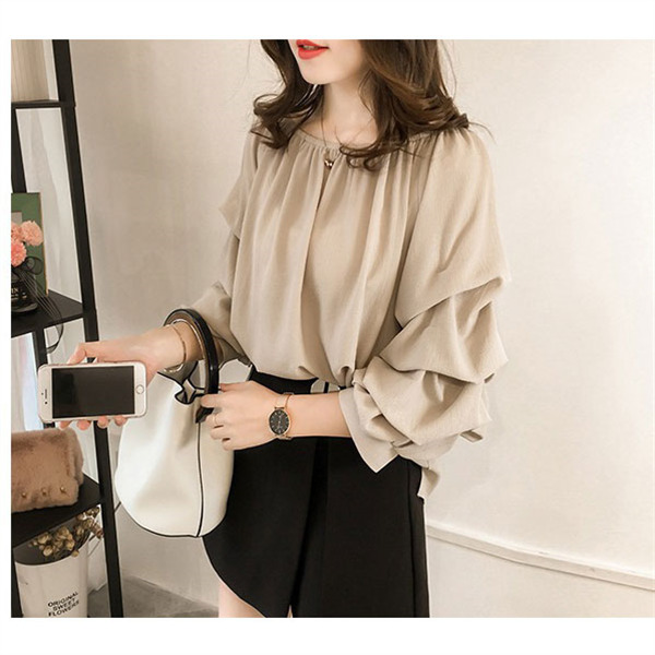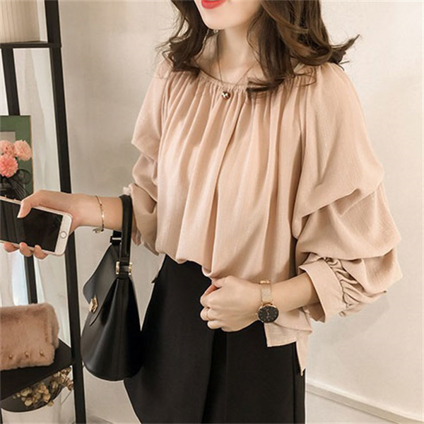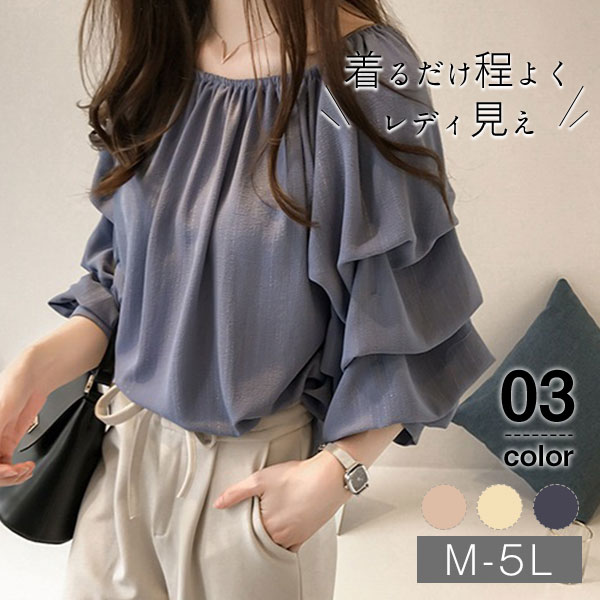 ブラウス レディース シャツ 丸襟 ボリューム袖 パフスリーブ きれいめ オシャレ 長袖トップス 大人 通勤 ゆったり 春コーデ 大きいサイズ