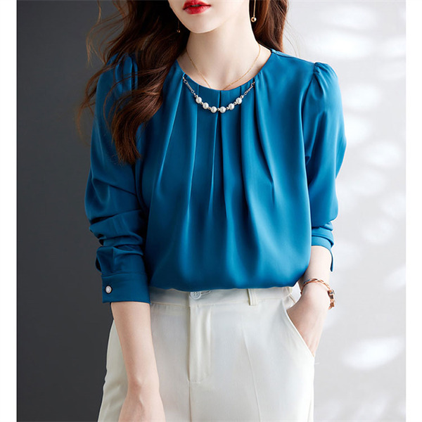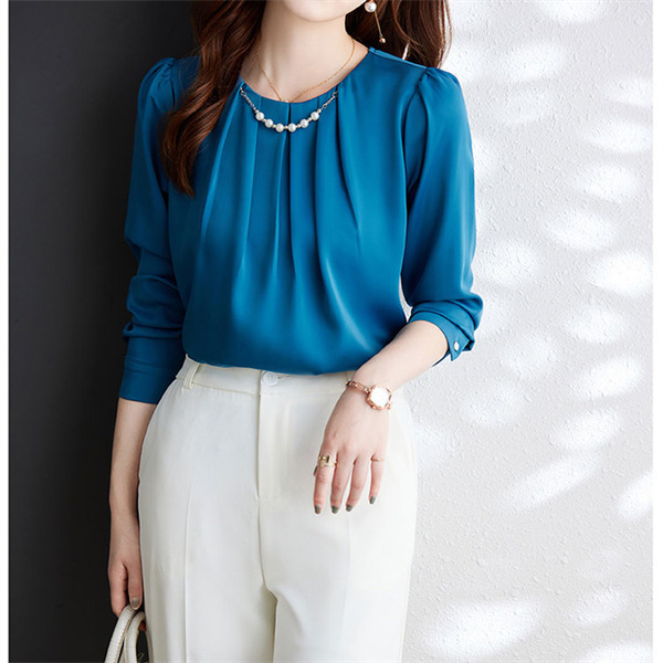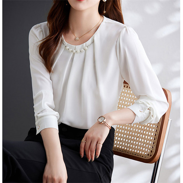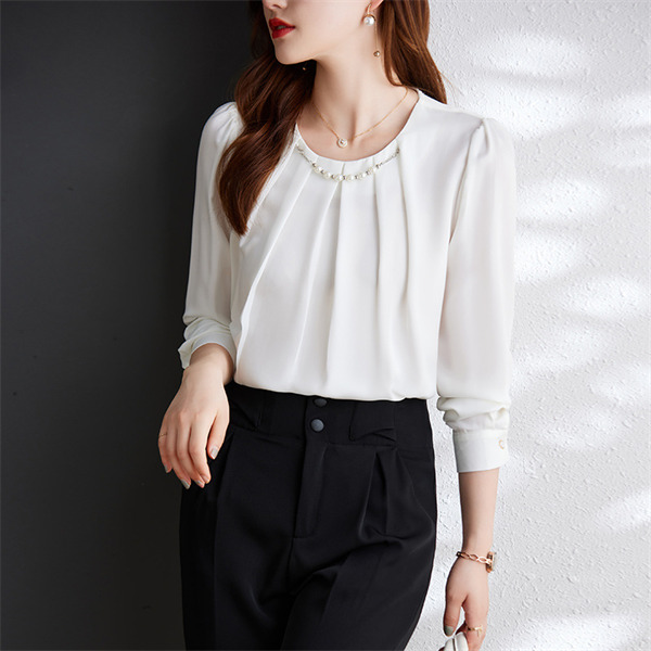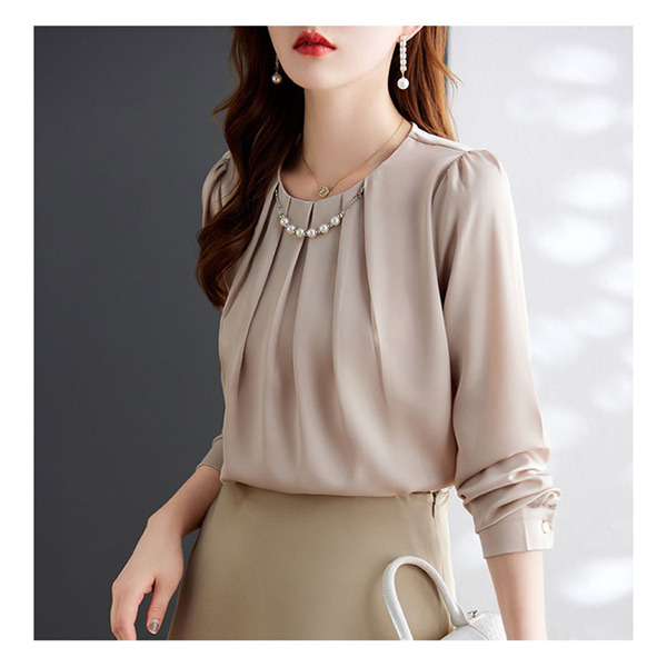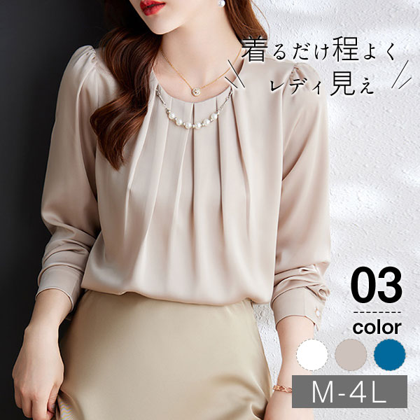 ポイント超超祭 ブラウス レディース シャツ 前タック パール トップス 通勤 オフィス 春新作 シフォン 長袖 韓国風 着痩せ きれいめ オシャレ 大人 ゆったり