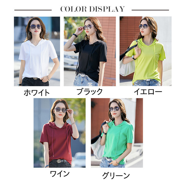 限定価格 ブラウス tシャツ フード付き プルオーバー パーカー 半袖 シャツ カットソー 無地 トップス レディース Tシャツ 夏 ゆったり カジュアル 送料無料