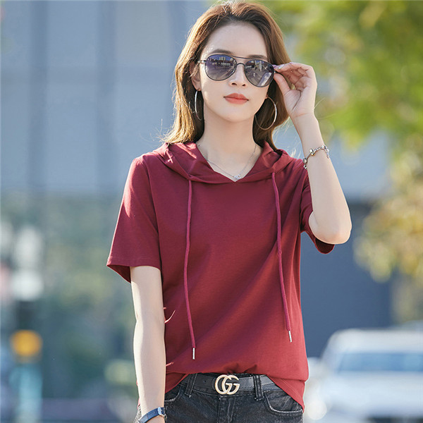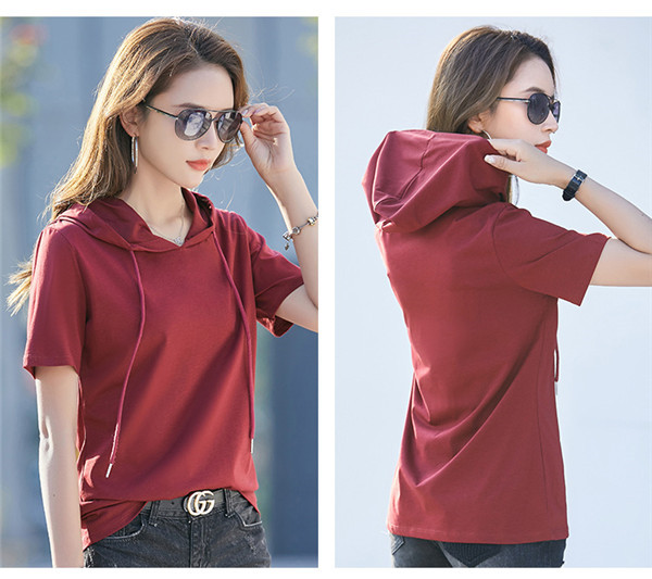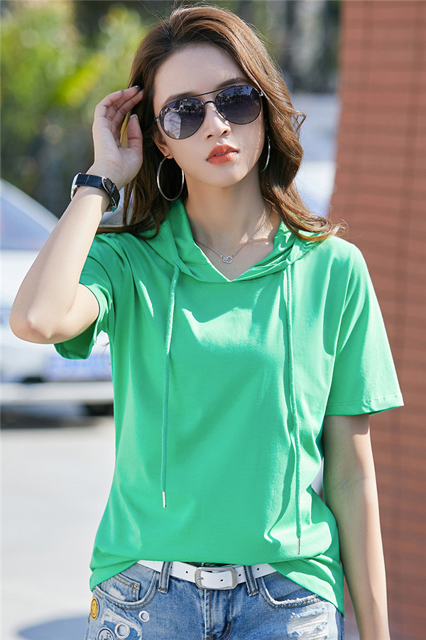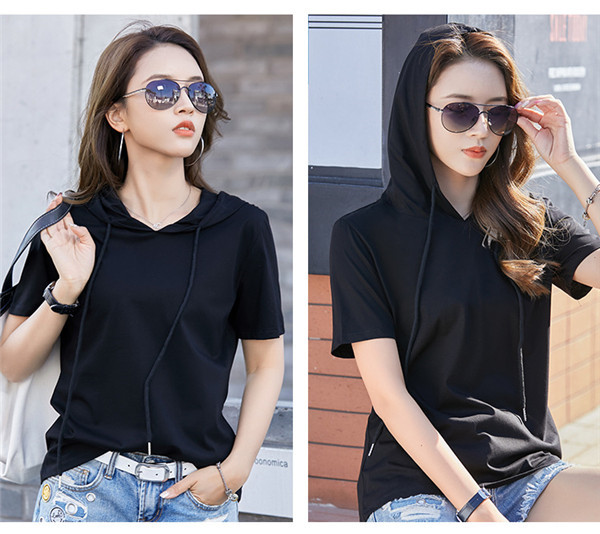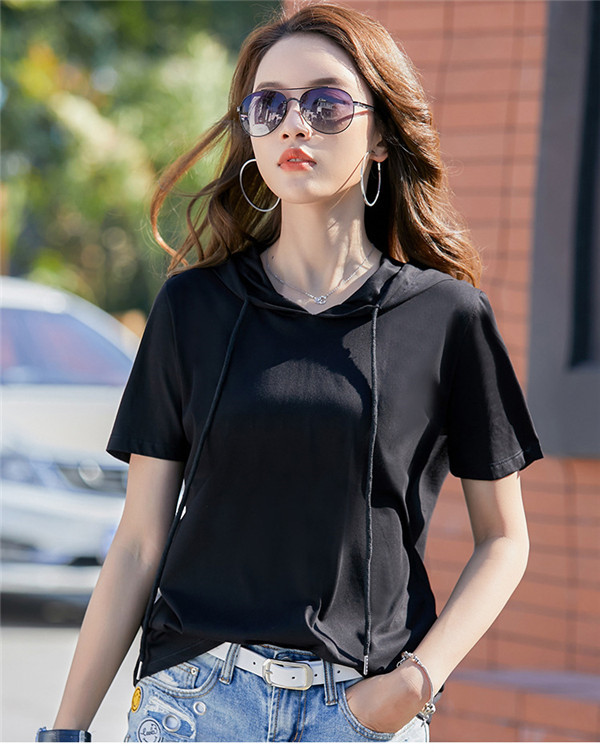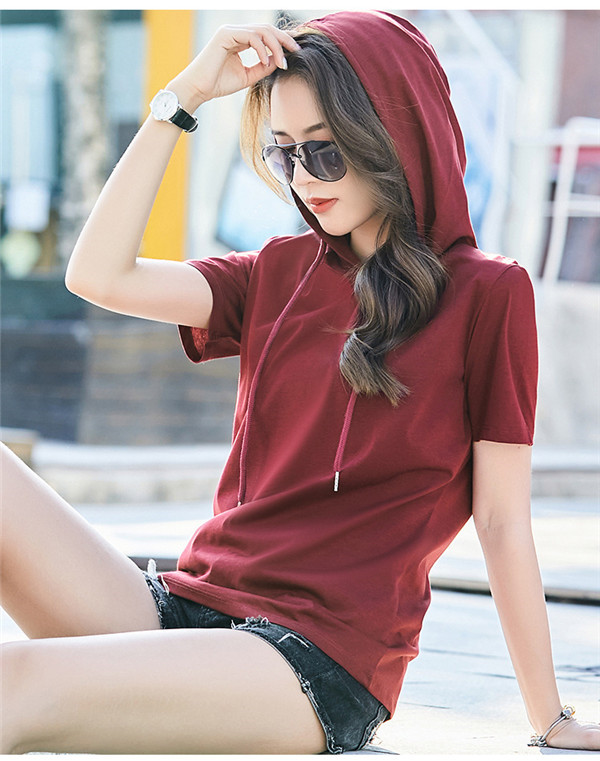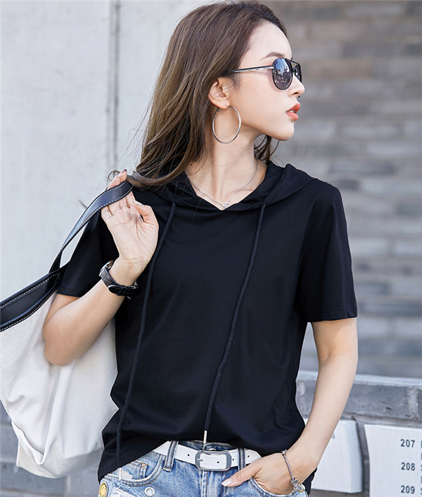 春夏大人気カジュアルフード付き半袖tシャツ。