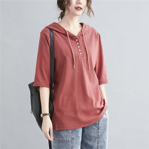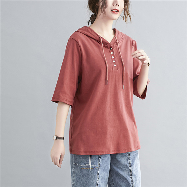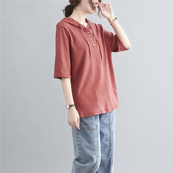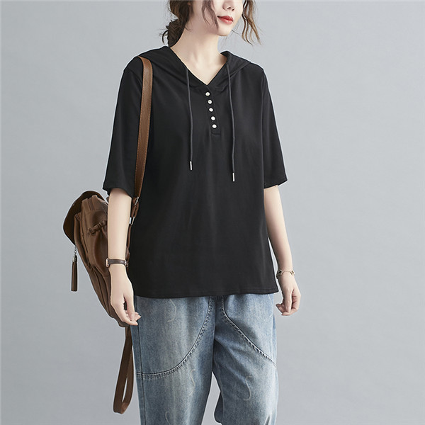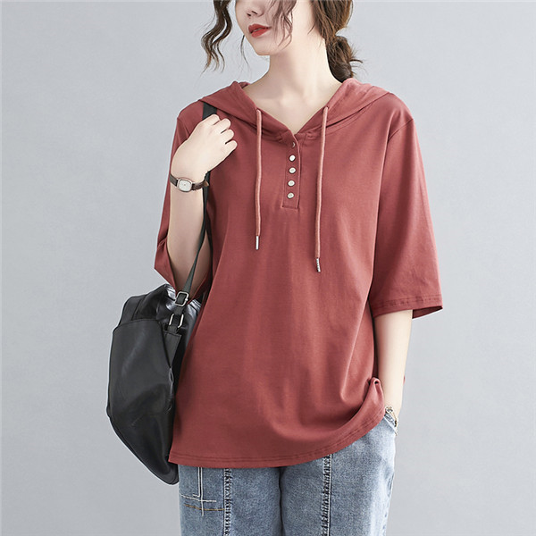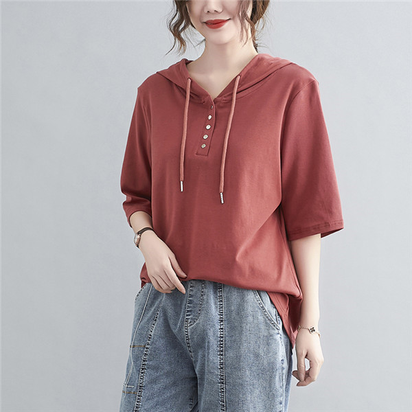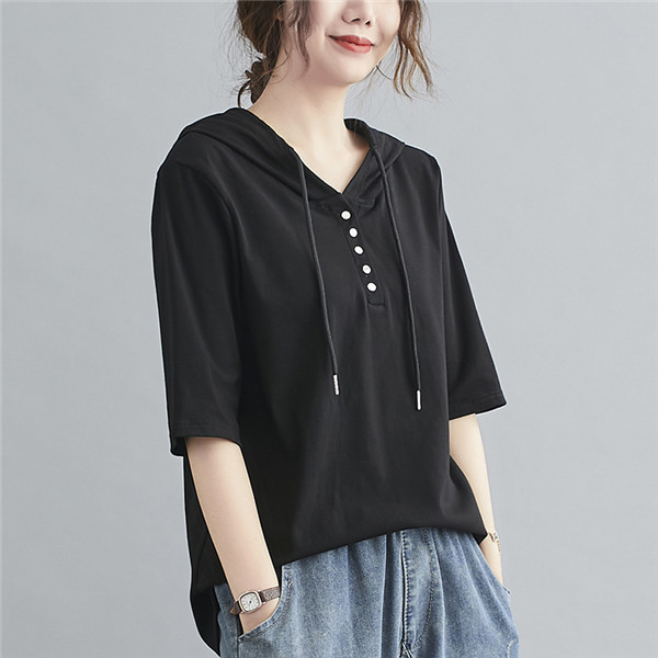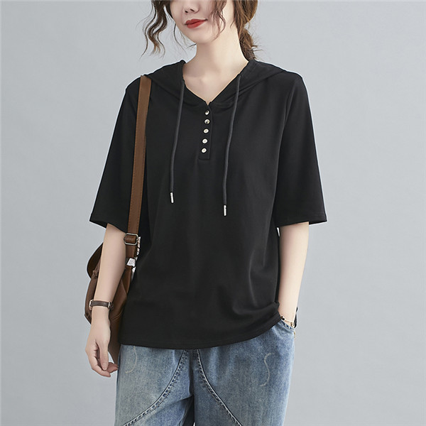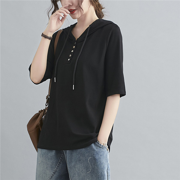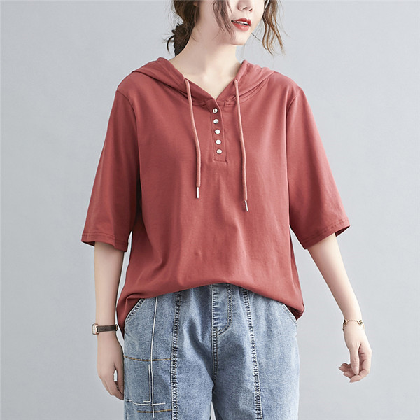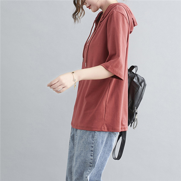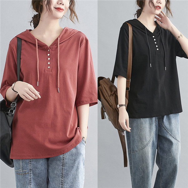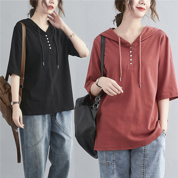 ポイント超超祭クーポン セール中 ブラウス tシャツ フード付き プルオーバー パーカー 半袖 シャツ カットソー 無地 トップス レディース Tシャツ 夏 ゆったり カジュアル 送料無料