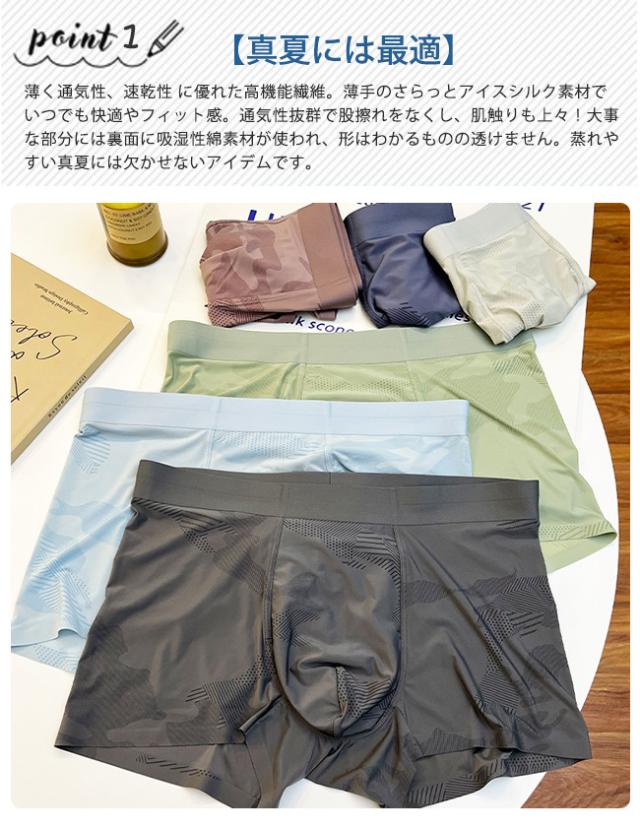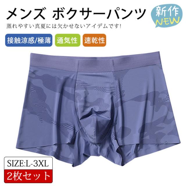 2枚セット メンズ ボクサーパンツ 薄型 アイスシルク 接触涼感 下着メンズ 3D 立体成型 薄型 シームレス メンズパンツ 冷感パンツ 涼しい 通気性 伸縮性 吸水速乾 父の日 プレゼント