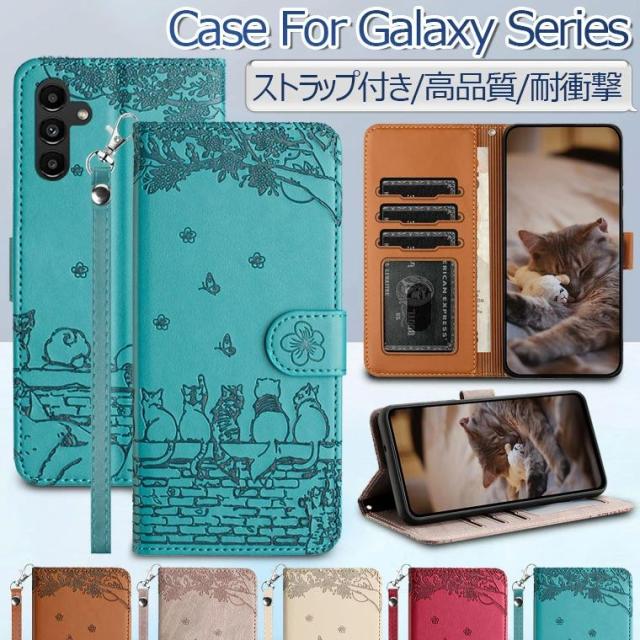 Galaxy A53 ケース 手帳型 Galaxy A54 5G ケース Galaxy A54 ケース おしゃれ Galaxy A52 5G SC-53B カバー A53 5Gケース 韓国 Galaxy A32 5G ケース 猫 型押し ネコ Samsung ギャラクシーa53 5g ケース 耐衝撃 ストラップ オシャレ 手帳ケース カード収納 スタンド機能