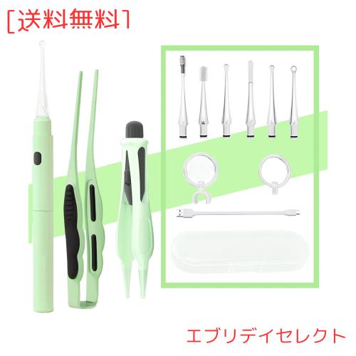 ??【LEDライト付き耳かきセット】:明るい耳かき、交換可能な6種類のイヤーチップ、USB充電ケーブル、拡大鏡、収納ボックス