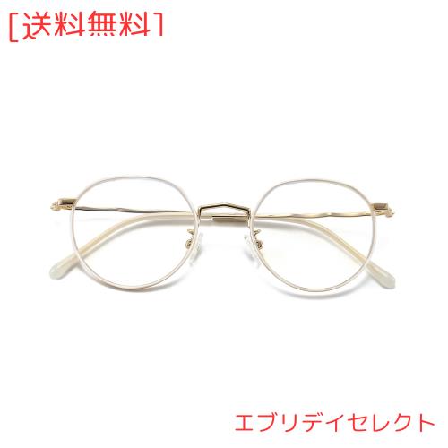 [Dollger] ブルーライトカットメガネ 伊達メガネ 度なし 超軽量17g 丸メガネ おしゃれ ブルーライトカット 白縁・ゴールド