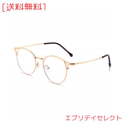[Dollger] ブルーライトカットメガネ 伊達メガネ 度なし 17g超軽量 uvカット 眼鏡 おしゃれ ゴールド