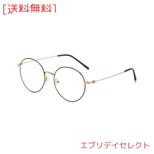 [Dollger] ブルーライトカットメガネ 伊達メガネ 度なし メガネ uvカット 17g超軽量 丸メガネ 黒縁・ゴールド