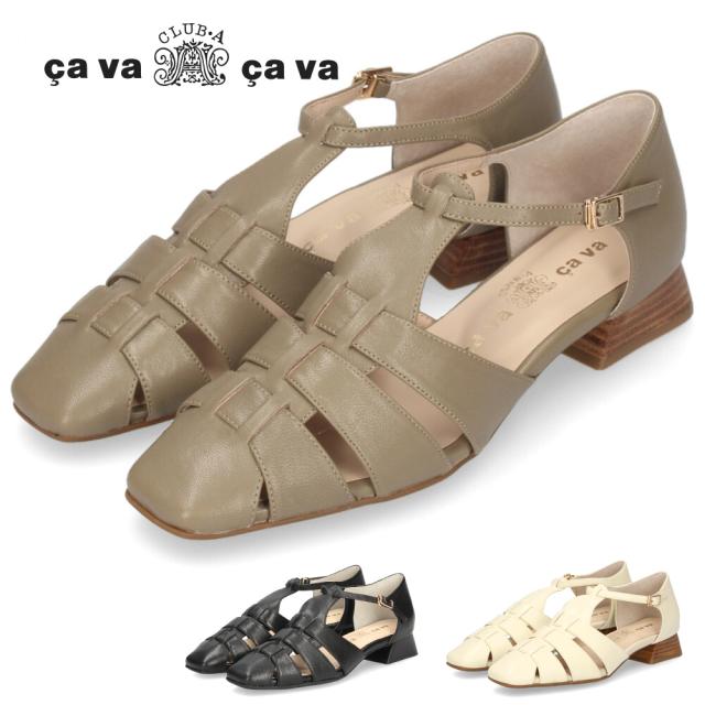 パンプス レディース グルカサンダル おしゃれ 黒 ストラップシューズ ローヒール サヴァサヴァ 1320581 ブラック アイボリー オリーブ 本革 靴 cavacava
