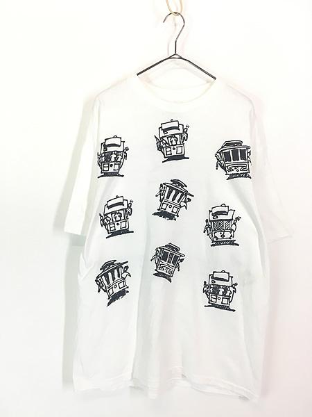 古着 80s USA製 WHIT'S LINE ケーブルカー 電車 モノクロ ポップ アート Tシャツ XL 古着