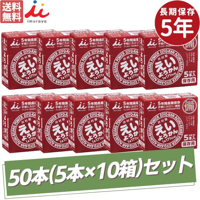 【まとめ買いにオススメ!】井村屋 イムラヤ えいようかん 5本入り×10箱 50本セット 5年間長期保存 災害 震災 遭難 レスキュー 非常食 保存食 防災アイテム 羊羹 ようかん 和菓子 マラソン ランニング 間食 おやつ 11166