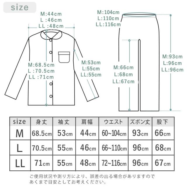 商品サイズ | 【上着】 実寸サイズ表はこちら ![]() ※ ご使用の状況や測り方により誤差が出る場合がございますので、目安としてお考えください。 |