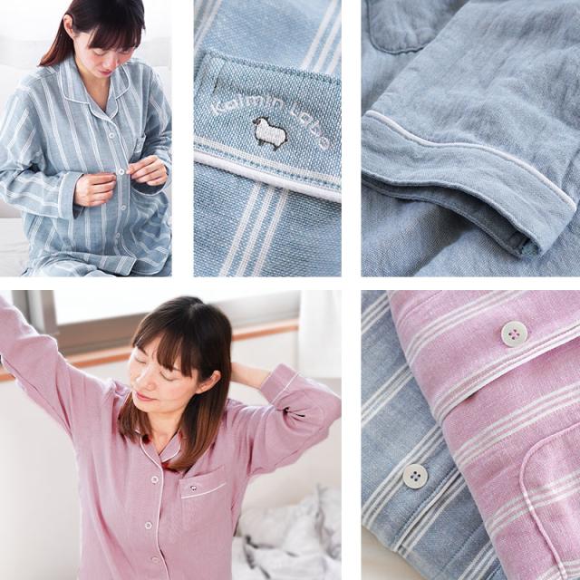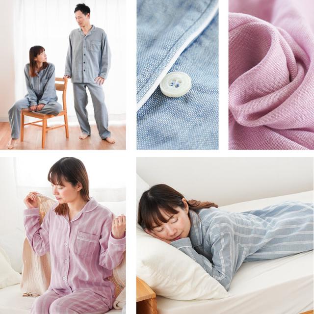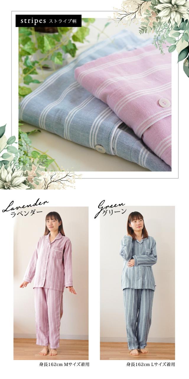 [ keyword | パジャマ レディース 今治ガーゼタオル 当社限定品 2重ガーゼ 快眠ラボ 婦人 M L LL 綿100% コットン 日本製 長袖 長ズボン 母の日 ギフト ブレゼント 今治タオル 無地 ストライプ パープル グリーン ペア オリジナル ]