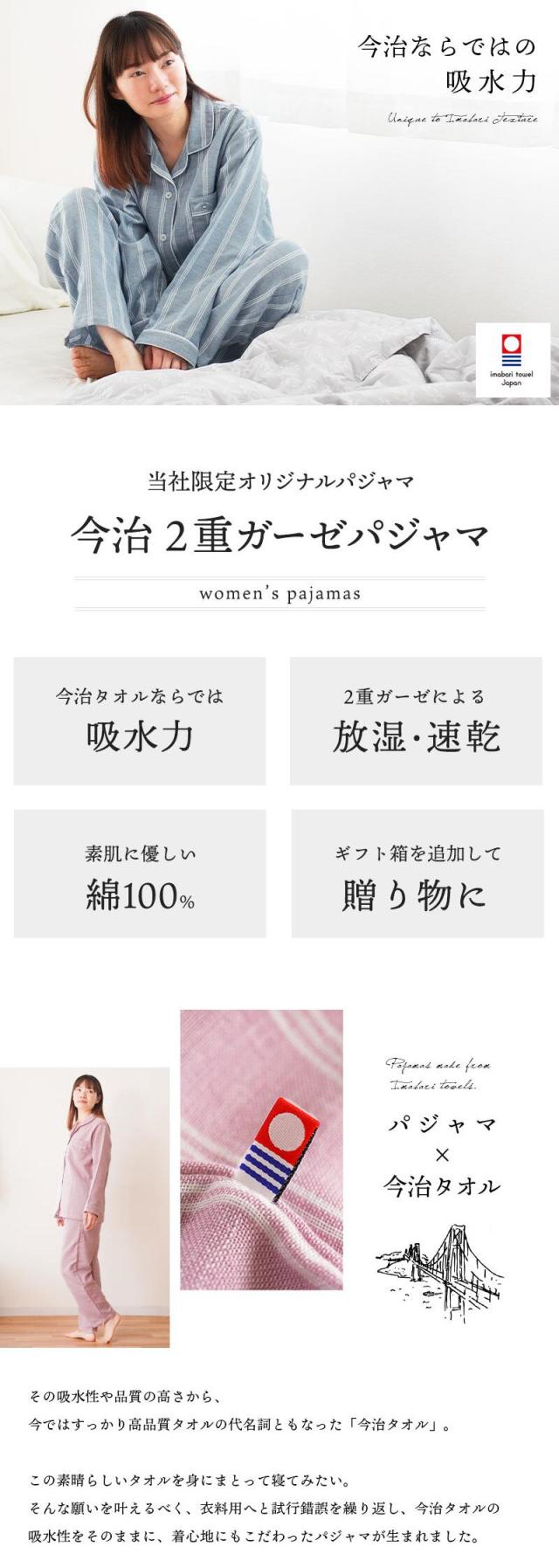 【ギフト無料】 今治タオル 2重ガーゼ パジャマ レディース 日本製 母の日 敬老の日 今治 敬老の日ギフト ガーゼタオル 婦人 綿100% 長袖 ギフト 当社限定品