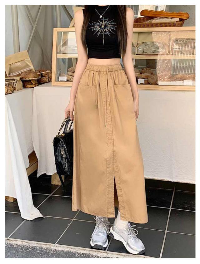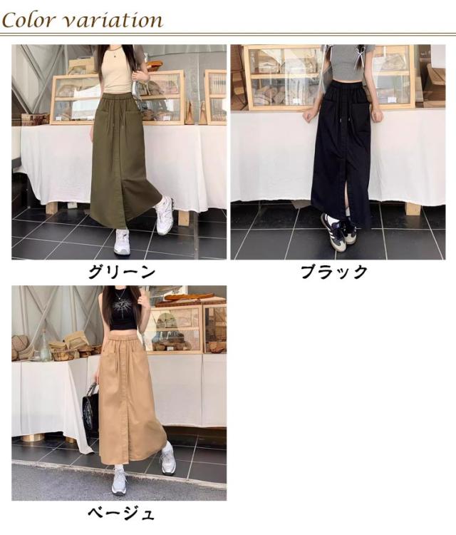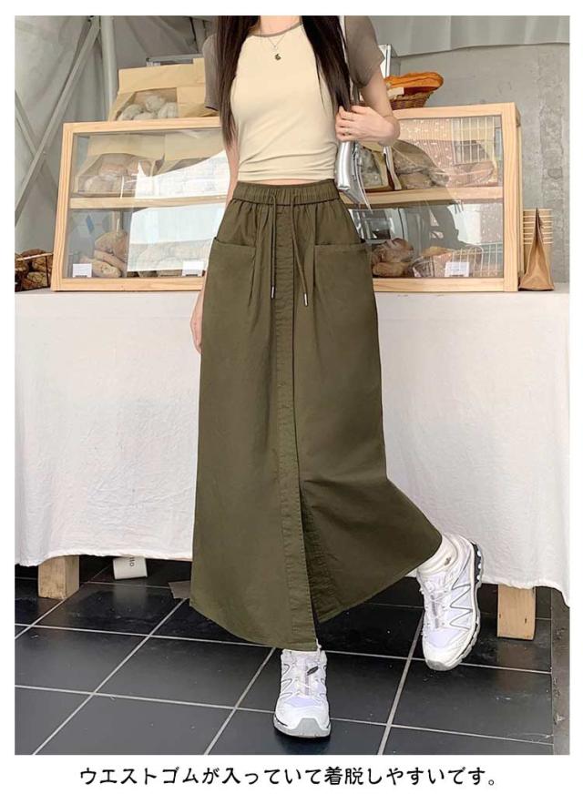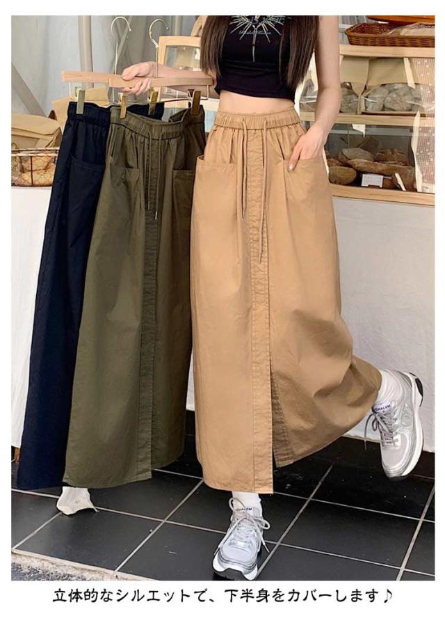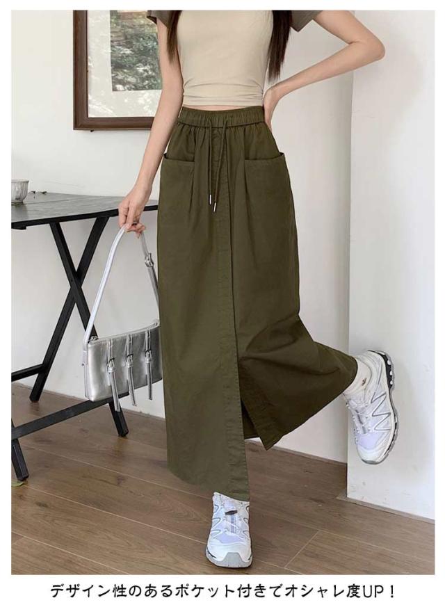カーゴスカート レディース 夏 スカート ロングスカート タイトスカート ロング マキシ丈 Aライン 春夏 ボトムス ミリタリースカート ポケット付き スリット 大きいサイズ カジュアル 韓国ファッション おしゃれ 体型カバー 着痩せ 送料無料